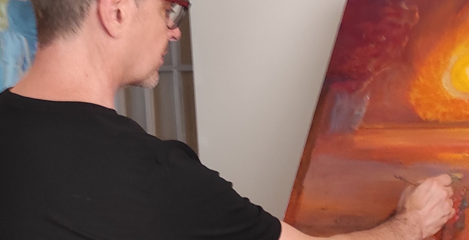 Emerging painter Jeff Vertigo develops a singular universe where he invites immersion in his unique perception of matter, color, and light. Through poetic abstraction, his work questions space and time, while addressing the universal themes of love and life. Since the age of 15, Jeff Vertigo has explored various painting techniques, including oil and watercolor, with a distinctly personal approach that rejects academic conventions.
